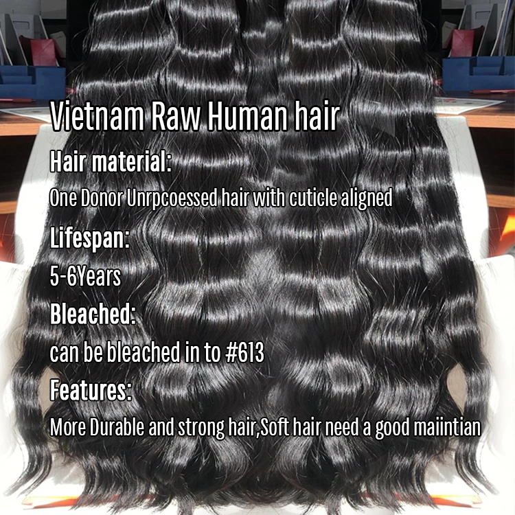 Upgrade your look with premium raw virgin hair sourced directly from Vietnam and Cambodia. Each bundle is 100% unprocessed human hair, cut from a single donor with cuticles fully aligned in the same direction for a natural, tangle-free flow.
